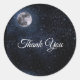 Beautiful celestial background with full moon on navy blue, sparkling stars and planets. Thank You text can be changed to suit your event. Personalize with name date and occasion.