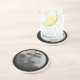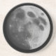 Digital hand drawn full moon in shades of grey on a round sandstone coaster.