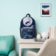 A faux suede background in dark blue and black represents the night sky and serves as the backdrop for a full moon and stars peeking out from behind some clouds. A jet black raven soars across the sky and completes this dark Gothic inspired design.