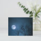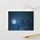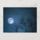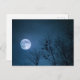The full moon during winter. The sky is cloudy, and the silhouette of the barren winter trees gives it a spooky Halloween vibe.