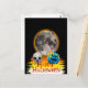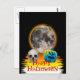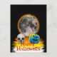 Carte Postale Pleine lune, crâne et Citrouille bleu la nuit.