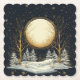 Full Moon Winter Pine Tree Forest Snowflakes Paper Coaster