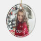 Modern and minimal photo ornament. The Name is displayed over the photo. Customized with your own photos on the front and back.