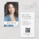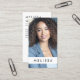 White or any colour, vertical business cards with you name and photo on the front and name, QR code, name, title and contact information on the back.