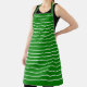 Stylish horizontal white stripes on a nice green-apron, and with your own name and special words printed on it