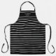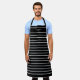 Stylish horizontal white stripes with your own name and special words printed on a nice black-apron