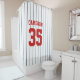 Baseball jersey stripes style shower curtain with colors that are fully customizable. Click customize and change the background color. To change the stripes color, click customize, select ThinStripes1 layer and change the fill color. Perfect gift for the baseball fan.