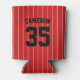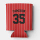 Baseball jersey stripes style can cooler with colours that are fully customizable. To change the background colour, click customize, select the "Background:Images and Text" layer and change the background colour. To change the stripes colour, click customize, select the "Background:Images and Text" layer, select "ThinStripes1" element and change the fill colour. To change colour of text, select each "Front" and "Back" layer, select the text elements and change their colour. Perfect gift for the baseball fan.