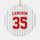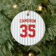 Baseball jersey stripes style ornament with colours that are fully customizable on the front and you can add your photo on the back. On the front, to change the background colour, click customize and change the background colour and to change the stripes colour, click customize, select "ThinStripes1" layer and change the fill colour. Perfect for the baseball fan this holiday season.