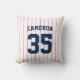 Baseball jersey stripes style throw pillow with colours that are fully customizable. To change background colour, click customize and change both background of front and back side. To change the stripes colours, click customize, select ThinStripes1 layer for both the front and back side and change the fill colour. Perfect throw pillows for the media room or bedroom of a baseball fan.