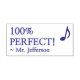 This inspirational rubber stamp design features the motivating message "100% PERFECT!" and a custom teacher's, educator's or tutor's name. It also features a decorative musical note. It could be used by a teacher or educator when grading student work, to acknowledge that a student has done an exceptional job.