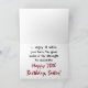 A white background featuring red text, on this 70th birthday greeting for a sister. My Funny Mind Greetings.