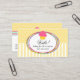 © 2011 Socialite Designs. Our colourful cupcake business card design has a whimsical cupcake design and a colourful doodle banner for your business information. A perfect business card for a bakery business. Personalize this fun bakery business card with your business information. Need HELP with customizing? Please do not hesitate to contact me with your requirements.