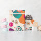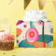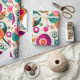 Colourful round shapes of orange, turquoise, fuchsia and light pink and green create a fun and modern storybook style design that is delightful for wrapping gifts for Christmas and other fun occasions!