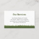 The front of the card clearly outlines your services: lawn mowing, edging, trimming, aeration, weed control, fertilization, seeding, overseeding, leaf removal, yard cleanup, and snow removal. The back provides all the essential contact information for easy access, ensuring potential clients can reach you quickly.