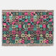 A fun original patchwork like design made up of different symbols in a palette of harmonious colours, some abstract and some more representational such as the face and dice yet all reminiscent of fun, games, novelties, entertainment, even Ambient, Chill-Out and Trance music which it may have been partly inspired by. A fun colourful design with lots of variety.