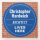 Fun Commemorative Style Wall Plaque Gift in the form of a Glass Coaster for an Architect. Blue and white plaque. Edit the design to change the wording to suit the gift recipient.