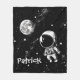 This is a fun fleece blanket for a child who loves space and astronauts. It is a simplistic illustration in black and white of an astronaut in space with the Earth in the background. The name on the blanket is customizable and would make a great personalized gift.