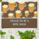This design features lots of beer steins filled with your favourite beverage and lots of foam! The towel is in colours of brown and light blue. As is, the message says "Proud to be a Beer Snob", but you can easily change the message to personalize it for anybody.