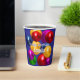 Fun and colourful birthday party paper cups featuring a rainbow of floating balloons set against a bright blue backdrop. Super easy to customise for a fun filled event.