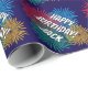 Fun Birthday wrapping paper with fireworks print. Personalized wrapping paper for celebrations. Cheerful design with custom name. Customizable background colour. Available in matte and glossy.