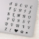 Fun black colour font typography monogram text letters alphabet sticker pack for monogramming, personalizing, customizing, note writing, journals, notebooks, and more. This set also includes an exclamation point, heart, flower, and star.