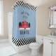 This shower curtain is a great fun addition to your bathroom. The shower curtain features a sweet red racing car and can be easily personalized to include your child's name. The other text 'PIT STOP' can be kept as-is or edited.