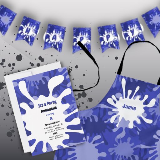 A fun blue painting splatter 8th Birthday paper party hat makes a great addition to an art Birthday party. For colour and customization assistance or to discuss a custom design, contact https://t.me/KBMD3signs_chat.