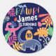 Fun, Bold & Colourful Dinosaur Jungle Leaves Classic Round Sticker