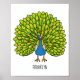 Fun bright peacock bird illustration poster