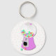 Whimsical gumball machine key chain, ready to put your set of keys on. A polka dot background has graphics of a pastel pink gumball machine. Fun for teens to seniors. Makes a sweet gift for the new driver, in the family.