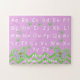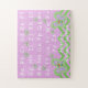Cute smiling butterflies with polka dots flutter about the letters on this fun alphabet learning puzzle. Colorful pink and green zigzag pattern base. Text and name may be personalized using the template provided. Perfect for kids to enjoy and learn at home. A great teaching aid. Original design by Anura Design Studio.