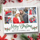 Modern Fun Calligraphy Script 5 Photo Couple Photo Collage Merry Christmas Postcard includes Watercolor Christmas Holly Berries - Green Script