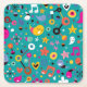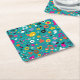 fun cartoon pattern teal square paper coaster