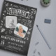 Fun modern chalkboard doodle 2 photo 'Shhh...It's a Surprise' Birthday Party Invitation is perfect for any age! Simply upload a before and after picture of the birthday girl/boy or man/woman and customize the template with your own event details.