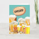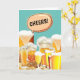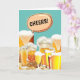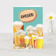 A fun and humorous graphic design featuring beer mugs with frothy tops resting on top of pretzels and yellow cheese set against a background color of your choice. This card is perfect for any special celebration that the guys want to celebrate with the men - retirement; farewell; congratulations; graduation; new dad; new job; new business; a promotion and more. The only limitation is your imagination.