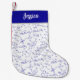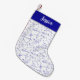 Christmas stocking design features fun pattern of handwritten chemistry study notes in blue on white background with customizable text to personalize with name or monogram.