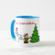 This is a fun mug to give as a gift or use yourself during the holiday season. It features my cute Chrismukkah characters: A Snowman, elf, gnome, reindeer, Santa and a Christmas tree with the Star of David on top.. The text can be changed on this mug or removed. Also, if you don't want the blue that I'm showing this on you can change colours. Also, you can buy this design on any of the drinking items offered. Designed by Sheila Cicchi, Brownielocks.com. All Rights Reserved.