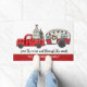 Fun Christmas Holidays Festive Plaid Caravan Name Doormat features a whimsical design of a pickip truck with Christmas trees towing a caravan with the text Över the river out through the woods" and your personalized family name below. Personalize by editing the text in the text box provided. Designed by ©Evco Holidays www.zazzle.com/store/evcoholidays
