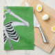 Fun Christmas Skeleton Ornament Eyes on Green Kitchen Towel