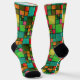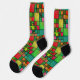 Artistic socks featuring a fun abstract geometric pattern in green and red colours, inspired by leaded glass windows. You can scale, drag and rotate the pattern if you like. Beautiful for Christmas.