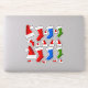 This Christmas themed design features a variety of Christmas stockings and Christmas Santa's hats of various sizes.