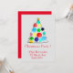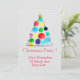 A party invitation for a Christmas party featuring a green Christmas tree original watercolor art painting. The text and background colour on this invitation is fully customisable to include your own personal details.