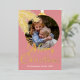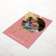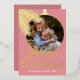 Contemporary classic Christmas holiday season greeting card with white coloured pine tree needles wreath leaves pattern on a classy blush pink background, with real gold foil Merry Christmas wish text. With option and room to customize the text, family name and year date, and add a personal photo of your choice on the front, and a customizable season greeting message on the backside of the card.