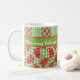 A fun white Coffee Mug to personalize, with two country-style, mix'n'match patterns of cute red dragons on a green and white check gingham background.