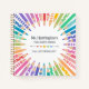 Fun and colourful school teacher notebook personalized with the teacher's name surrounded by coloured pencils, some with patterns, in soft rainbow colours. Kindergarten teacher's spiral notebook with colourful stars, and pencils in soft shades of the rainbow, with some patterns like stripes, dots, and stars. Jot down your teacher's notes this fall semester and spring semester in this square spiral notebook with custom pencil grey text in a hand-writing font where you can add your name, the purpose of the notebook, and the year. Perfect for an elementary school teacher, kindergarten teacher, pre-school teacher, art teacher, and more.
