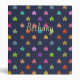 Roughly drawn stars pattern in bright colours on dark blue personalised gifts and accessories.