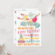 Fun colourful birthday balloon illustration. With room to customize or personalize with a name on the front, and your name(s) and text on the backside of the card.