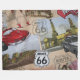 Beautiful contemporary collage image of Route 66 scene and classic cars. Trendy, stylish and eclectic design for the road traveller, fancy artistic interior designer, artsy décor diva, hip trendsetter, vintage retro art style motif lover. Available on a variety of modern home decor accents and fun accessories for decorating the master or children's bedroom, kitchen, nursery, living or family room, man or woman cave, college dorm, condo, studio or apartment, beach house, country cottage, log cabin, fishing camp, RV or camper, lake or river vacation home, or car.