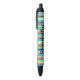 Fun colourful stripes of vibrant green, yellow, red, black, and turquoise blue on your own custom personalized pens - great for school or the office, where pens often go missing. Shown is the editable name, Samantha, in black script handwritten lettering. The text colour, size, and style is editable using the Design Tool. Designed by Heard_. #PersonalizedPen